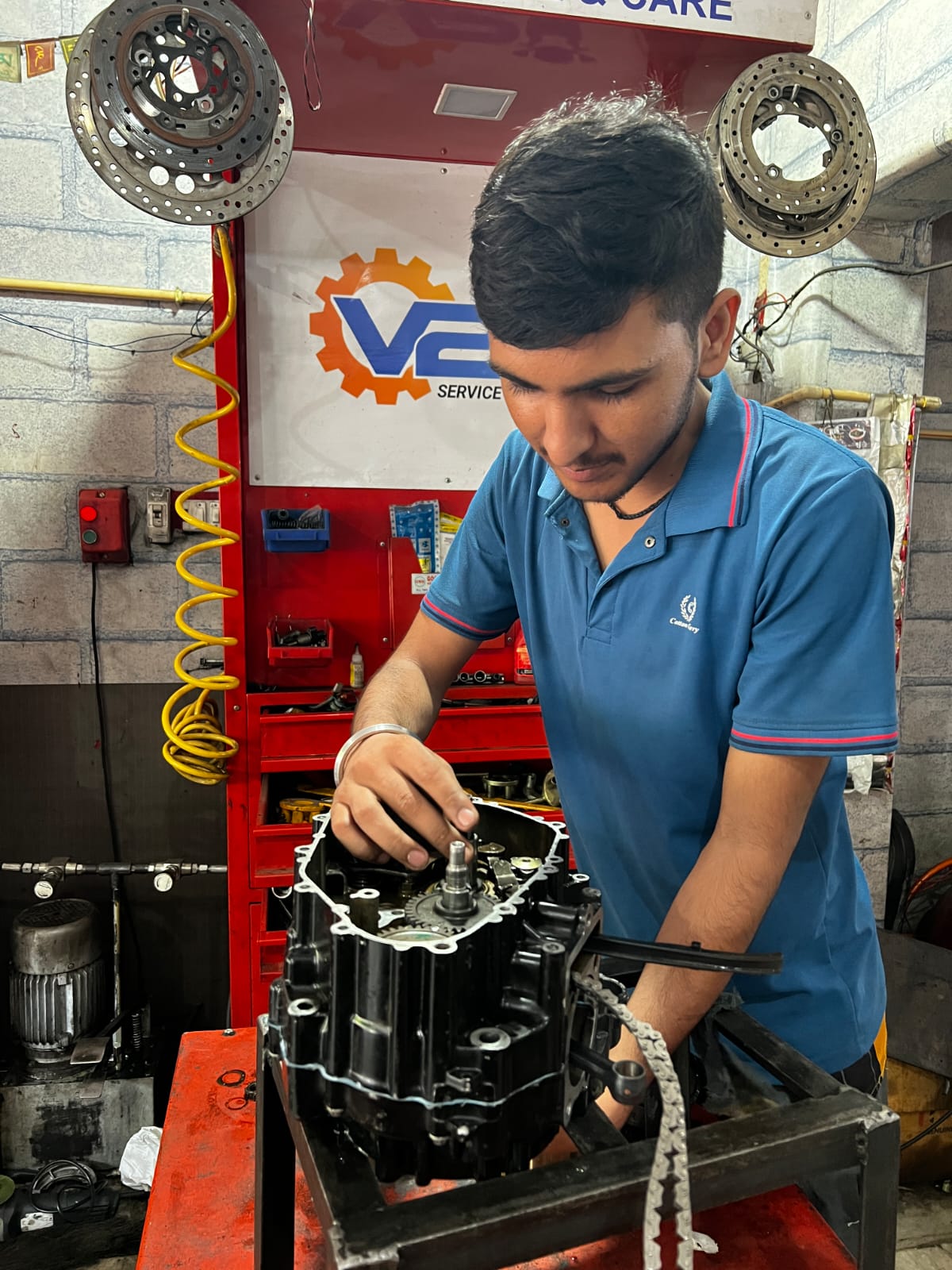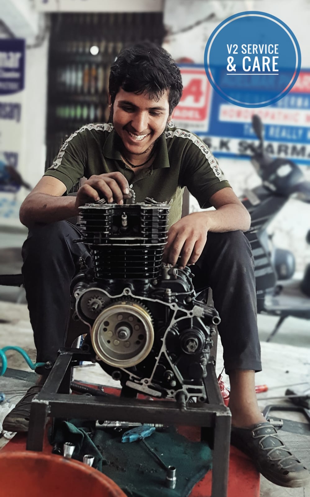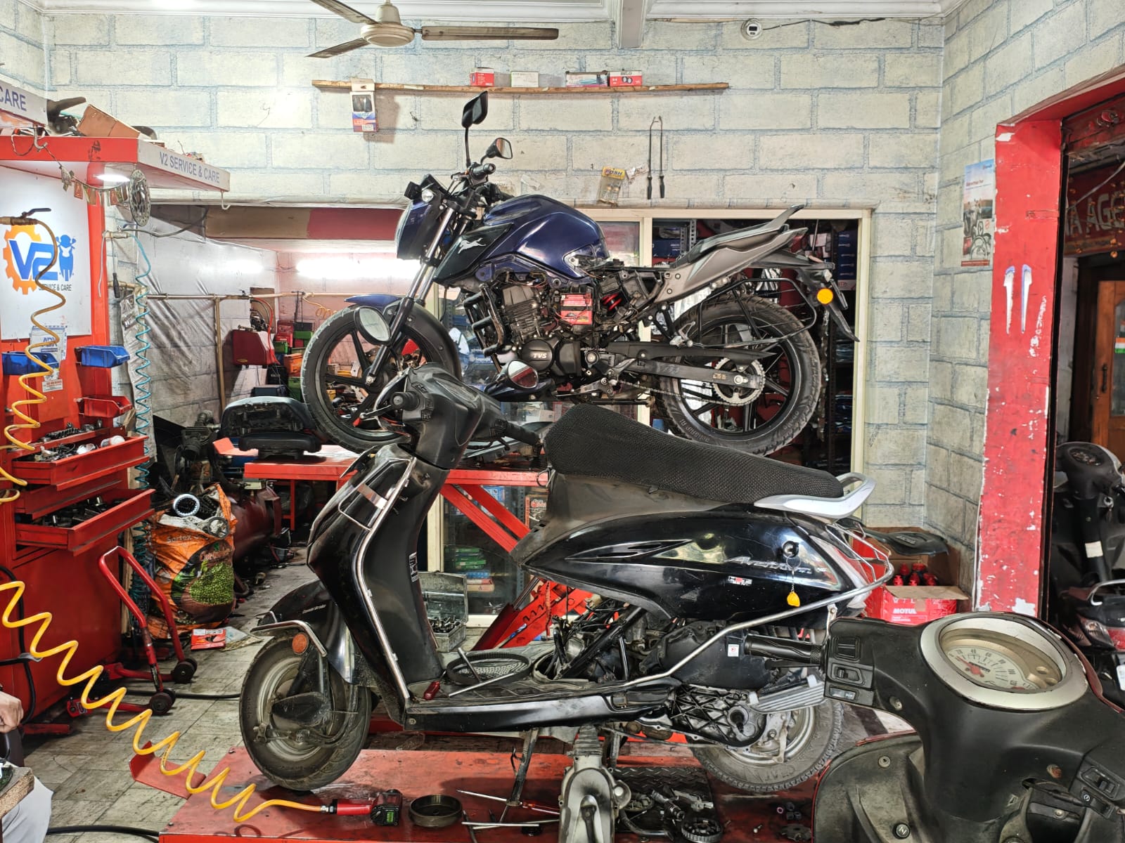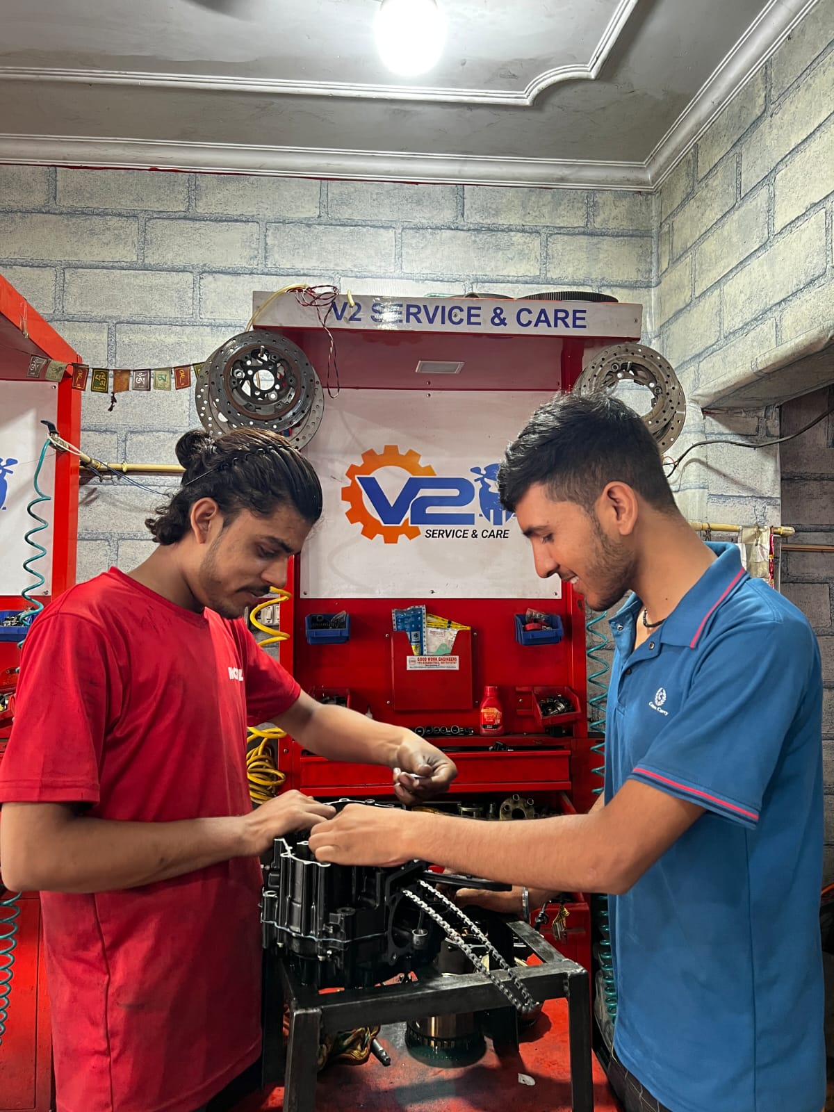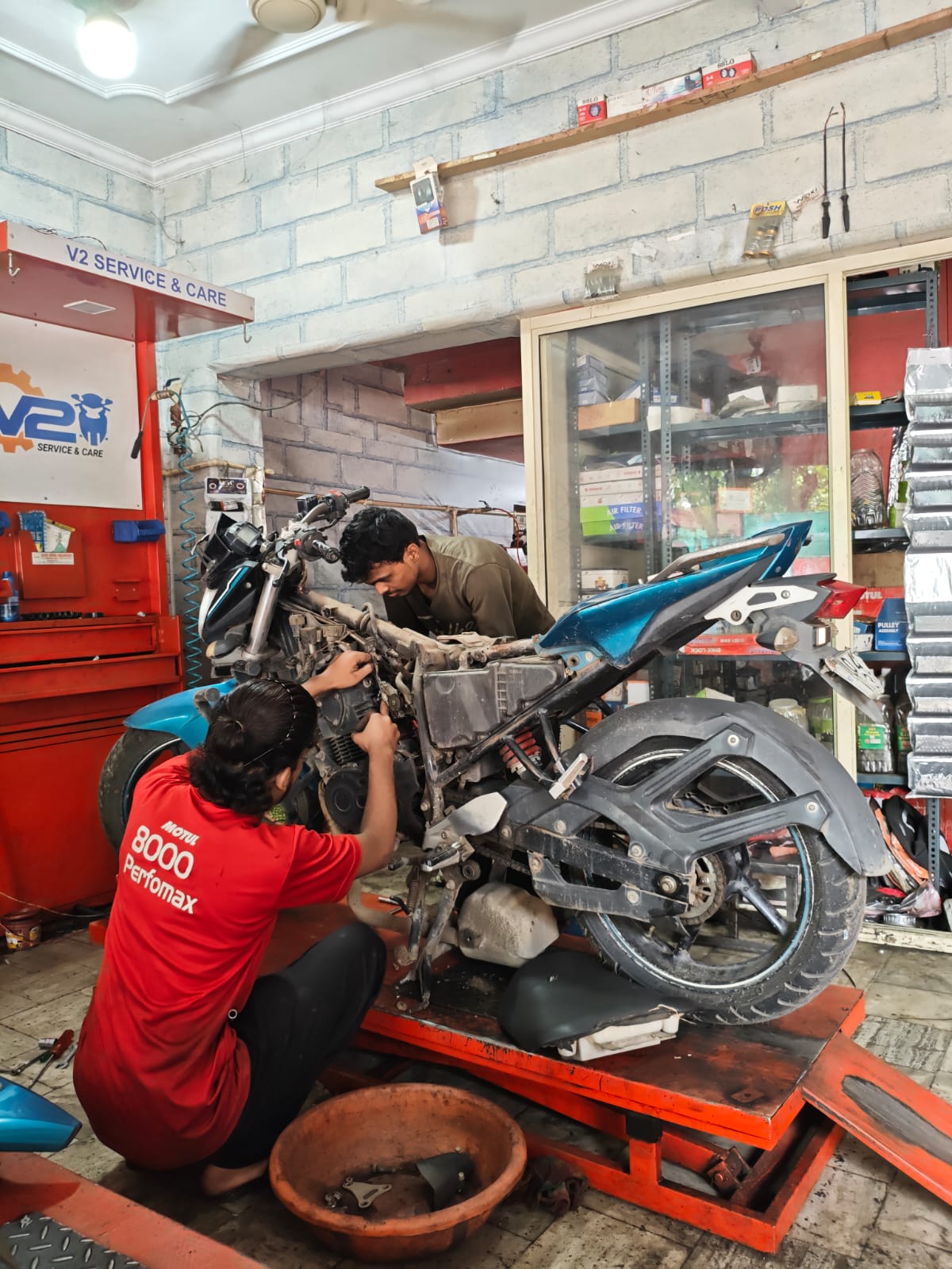 V2 Service & Care is a trusted and customer-focused two-wheeler service center dedicated to providing reliable servicing, maintenance, and repair solutions. We aim to keep your vehicle running smoothly with quality workmanship, transparent service, and timely delivery. Our skilled technicians use modern tools and proven techniques to service all types of two-wheelers, ensuring safety, performance, and long-lasting results. From regular maintenance to complete care, every vehicle is handled with attention and responsibility. At V2 Service & Care, customer satisfaction, affordability, and dependable service are our top priorities. We believe in building long-term relationships through honest work and quality service